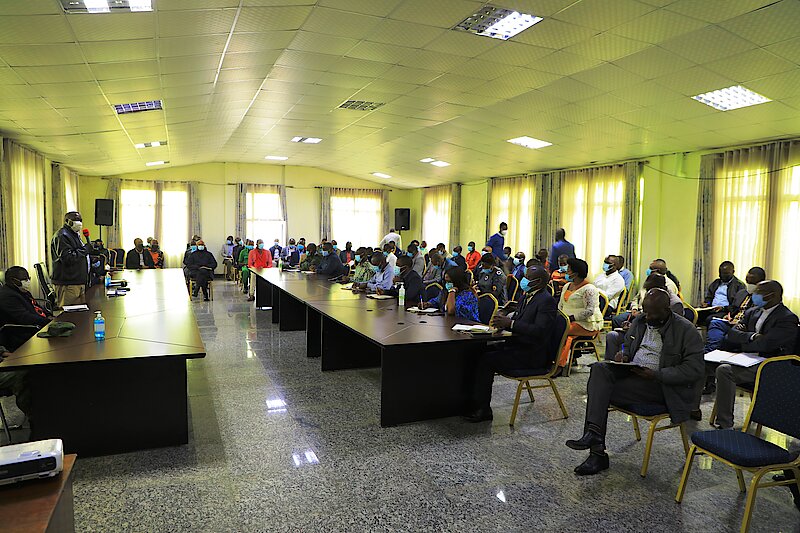 Muri iki gitondo, uruzinduko rwabimburiwe n’inama yagiranye n’abakozi bakorera ku rwego rw’Akarere n’abanyamabanga nshingwabikorwa b’imirenge. Iyi nama ikaba yari igamije kunoza akazi abakozi bubahiriza inshingano uko bikwiye kandi mu bwumvikane n’ubwubahane.
