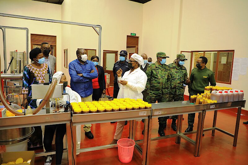 2. Uruganda rw’ubuki ruherereye mu murenge wa Kigeyo akagari ka Rukaragata aho ubuyobozi bw’uruganda bwasobanuye imikorere yarwo ariko rugaragaza imbogamizi y’umusaruro ukiri muke bigatuma rudakora ku kigero gishimishije. Minisitiri yashimye uburyo ubuki butanganywamo mu buryo bwujuje ubuziranange. Umuyobozi w’Uriganda akaba yagaragaje n’indi mishanga uruganda rufite mu gihe kiri imbere harimo no gukora divayi ikomoka ku buki.