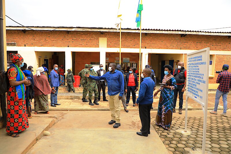 4. Site yo gukingiriraho COVID-19 mu kagari ka Gakeri Umurenge wa Ruhango aho Minisitiri n’abashyitsi bari kumwe bakurikiranye uko igikorwa cy’ikingira kiri kugenda. Nyuma yo gusura ibikorwa, Minisitiri yaganiye n’abaturage abashishikariza gukomeza kwitabira gahunda yo kwikingiza. Yabashimiye ubwitabire bamaze kugeraho abibutsa ko ntawukwiye gutinya urukingo ahubwo akwiye kuba atinya kurwara, kuremba cyangwa gutakaza ubuzima.