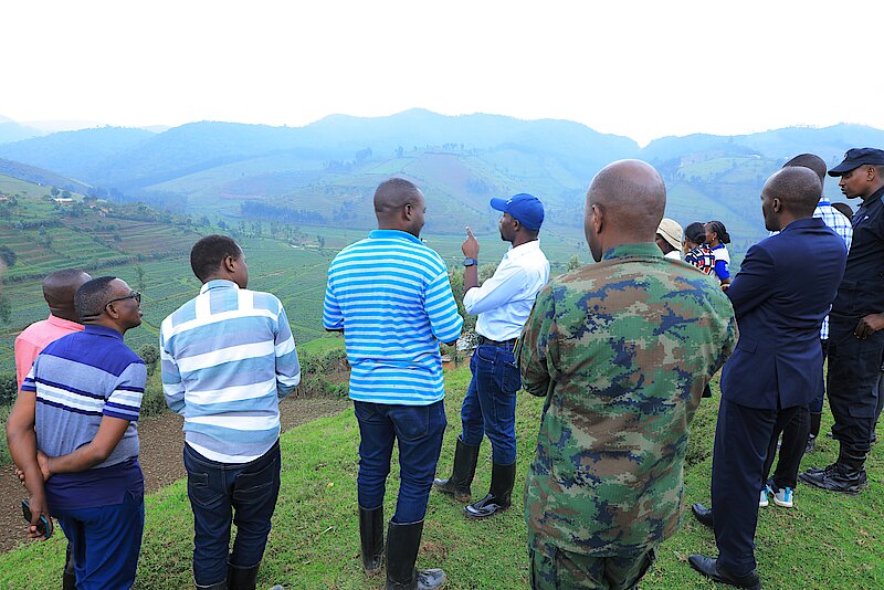 Minisitiri Dr. Musafiri yakomereje ku gusura igishanga cya Bitenga gikorehswa n’amatsinda y’abahinzi mu rwego rwo kureba uburyo kiri kubyazwa umusaruro aho iki gishanga ari nacyo gihingwamo ibirayi abahinzi bakaba bifuza kuzajya bituburira imbuto bakayibona hafi mu buryo butagoranye.