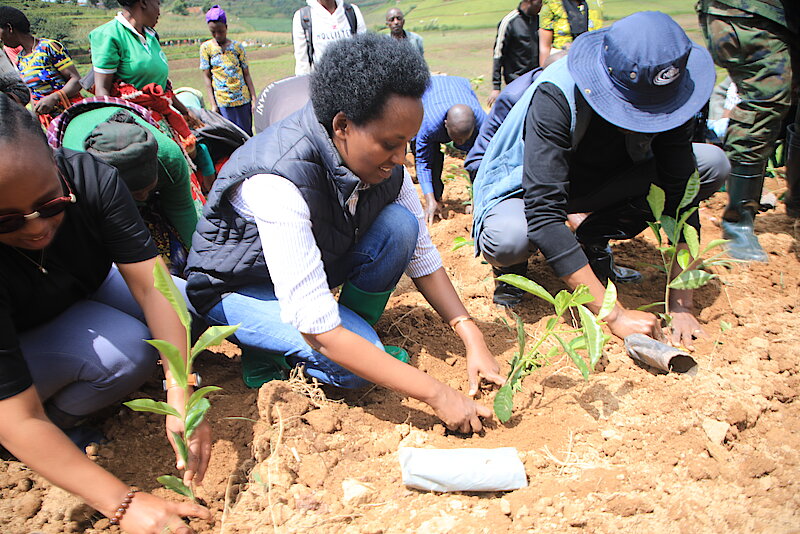 Uyu munsi tariki ya 12 Ugushyingo 2025, mu karere ka Rutsiro, ku bufatanye n’Ikigo cy’Igihugu Gishinzwe guteza imbere ibyoherezwa mu mahanga (NAEB), binyuze mu mushinga wa PSAC (Promoting Small holders Agri export Competitiveness Project), hatangijwe igikorwa cyo gutera ingemwe z'icyayi hagamijwe kongera ubuso buhinzeho icyayi no gusazura imirima itameze neza. Ni igikorwa cyayobowe n'Umuyobozi Mukuru wa NAEB Bwana Claude BIZIMANA ari kumwe n’Umuyobozi w’Akarere ka Rutsiro Madamu Kayitesi Dative.