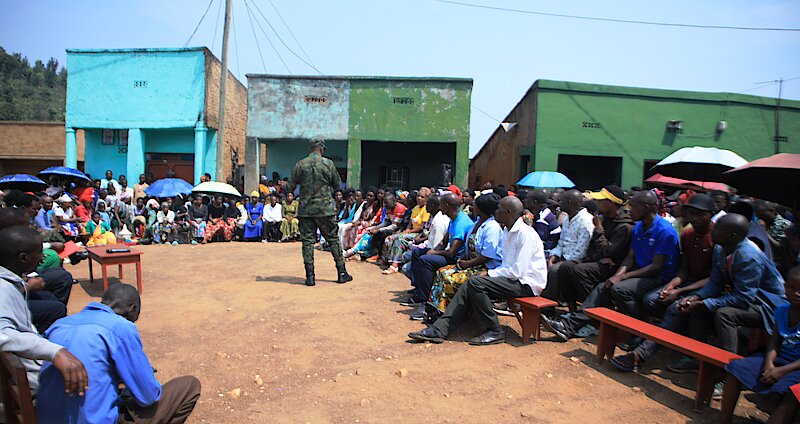 Agaruka ku mutekano, Majoro Charles Rubyogo yasabye abaturage kugira uruhare mu kwicungira umutekano no gutangira amakuru ku gihe. Yabasabye kudahishira ibintu babona bishobora guhungabanya umutekano, harimo abantu n'ibintu bidasabzwe. Yashishikarije abaturage kandi kuba haba hari abagifite abavandimwe bakibuyabuya hakurya y'imbibi z'Igihugu gutahuka mu mahoro, dore ko Umurenge wa Musasa uhana imbibe n’igihugu cya Repubulika Iharanira Demokarasi ya Congo. Yasabye abaturage gukora bakiteza imbere bakirinda ibibarangaza n'ibishobora guhungabanya umutekano. Ati: "Igihugu ni igihugu! Mureke tucyubake birashoboka!"