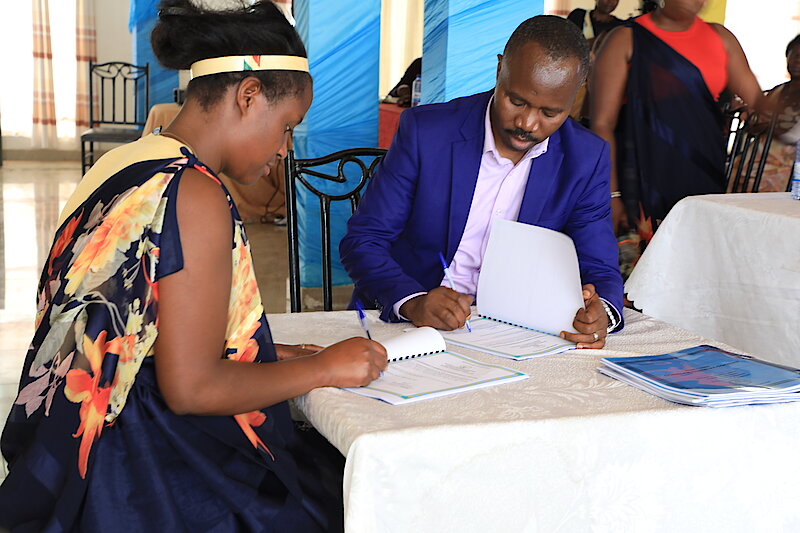 Abitabiriye inama bamaze gusobanurirwa imihigo ya ba Mutimawurugo izakorerwa mu midugudu yose igize Akarere 483, hakurikiyeho igikorwa cyo kuyishyiraho imikono. Umuyobozi w’Agateganyo w’Akarere, Bwana Mulindwa Prosper, yasinyanye n’Umuhuzabikorwa w’Agateganyo w’Inama y’Igihugu y’Abagore Madamu Mukarusanga Florence ku rwego rw’Akarere. Ku rwego rw’Umurenge, Umunyamabanga Nshingwabikorwa yasinyanye n’Umuhuzabikorwa w’Inama y’Igihugu ku murenge.
